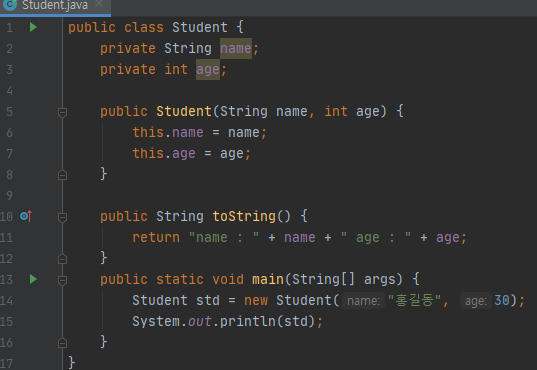 Student std = new Student("홍길동", 30);