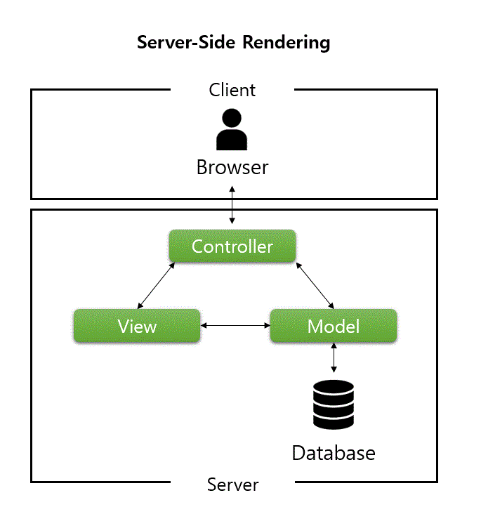 모든 템플릿은 서버 연산을 통해 렌더링하고 완성된 페이지 형태로 응답한다.