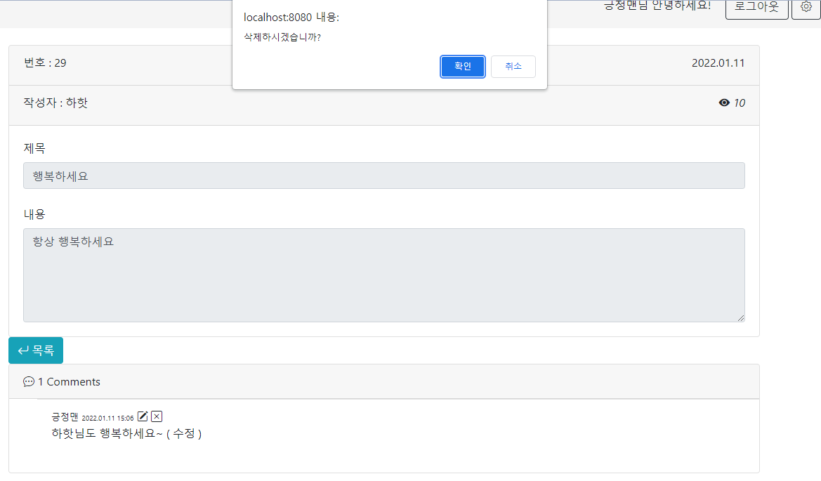 - Spring Boot JPA 게시판 댓글 수정 및 삭제 구현하기