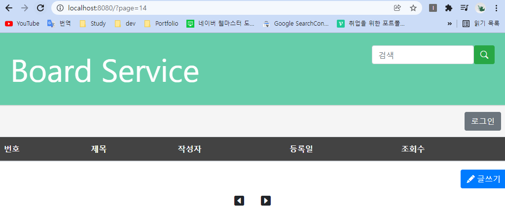 [>] 버튼을 계속 누르면 게시글이 없어도 page 가 끝없이 증가되어 나온다는 것이다. 아래 사진을 보자.