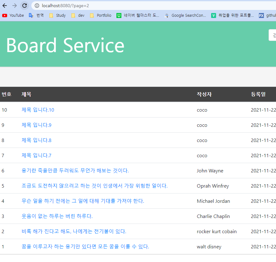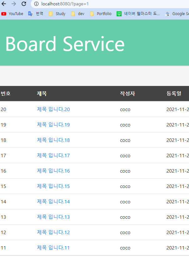 페이지의 사이즈가 10이고, 번호를 기준으로 내림차순 정렬된 걸 볼 수 있다.