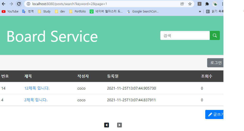 검색과 페이징처리까지 모두 완성 했다.