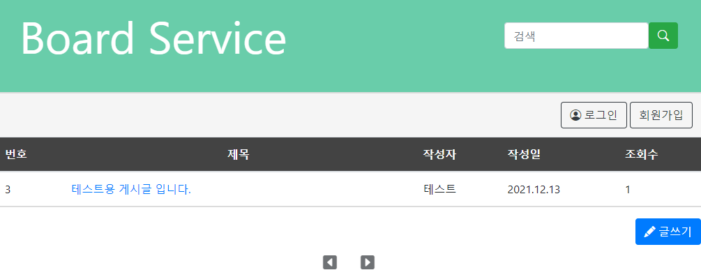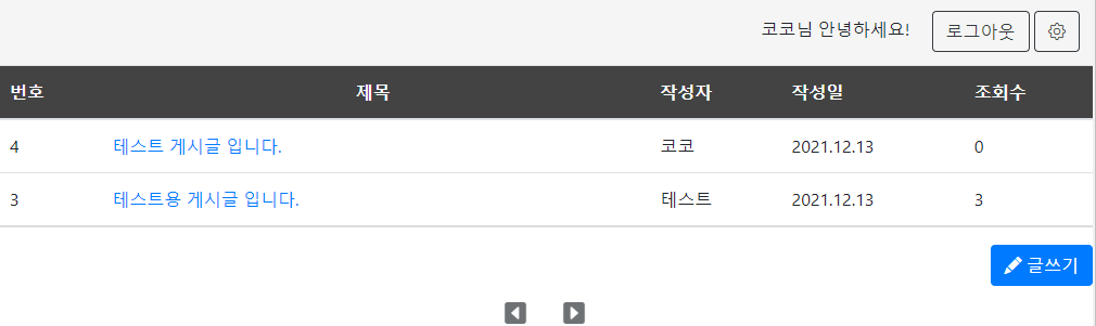 인증되지 않은 사용자가 글쓰기를 누르면 다음과 같이 로그인 화면으로 이동시킨다.