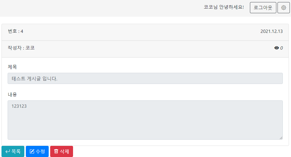 인증되지 않은 사용자는 메인화면, 검색, 상세보기만 가능하며, 글의 수정, 삭제 또한 불가능하다.