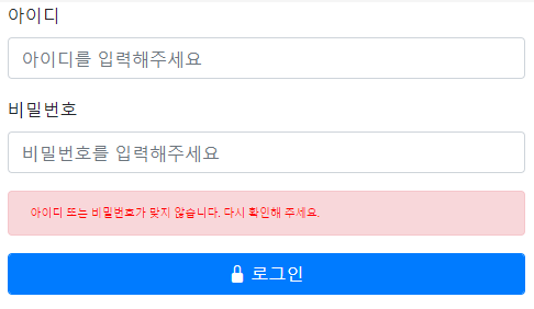 이번 포스팅에서는 로그인 실패시 에러 메시지를 보여주는 것을 목표로 하고 구현하려 한다.
