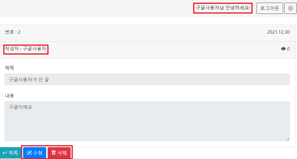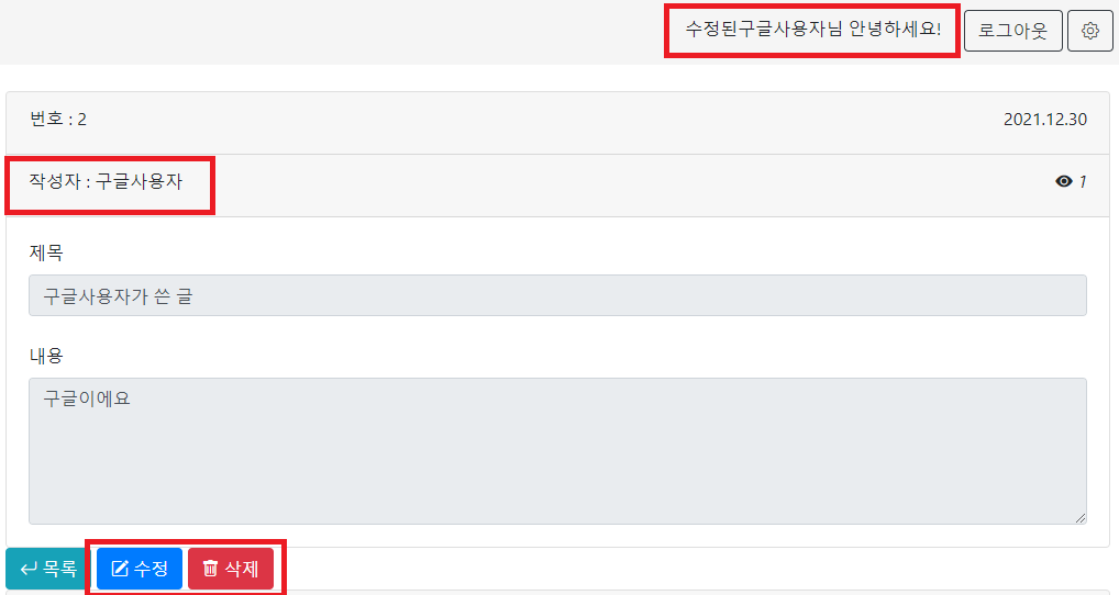 8-2. 글 작성자만 수정 및 삭제 가능