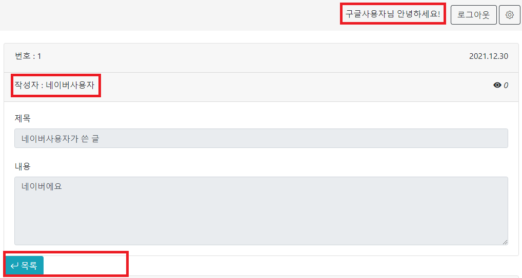 | Spring Boot 게시판 OAuth 2.0 네이버 로그인 구현 (1) | 2021.12.28 |