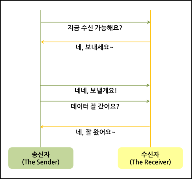 3-way handshaking 과정은 발신지와 수신지 사이에 논리적인 접속(세션)을 성립하는 과정을 의미한다.