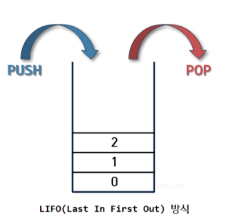 이러한 스택 구조를 후입선출(LIFO, Last-In-First-Out) 구조라 한다.