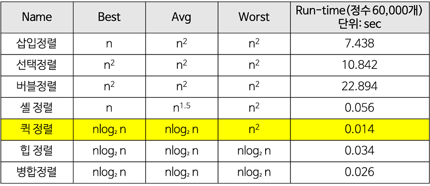 💡 정렬 알고리즘 시간 복잡도 비교 표