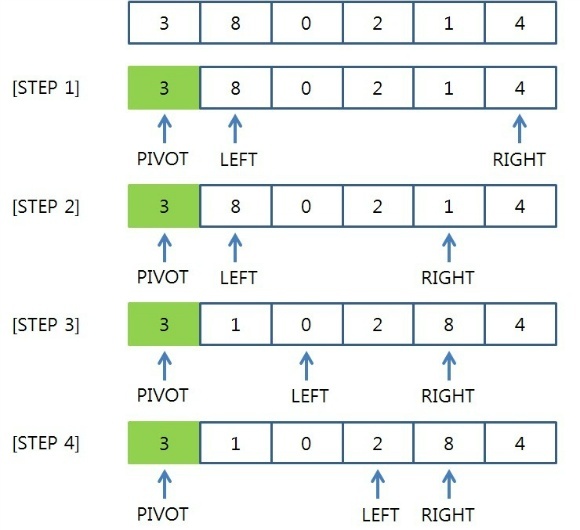 퀵 정렬은 빠른 정렬 속도를 자랑하는 분할 정복 알고리즘 중 하나로 피봇을 설정하고 피봇보다 큰 값과 작은 값으로 분할하여 정렬 합니다.