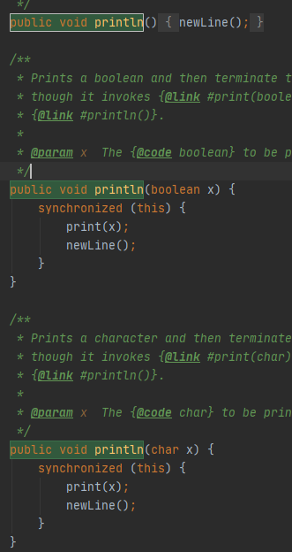 System.out에서 println 메소드를 사용하므로 PrintStream 클래스에서 println 메소드가 선언되어 있을 것이다.