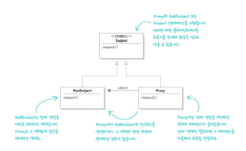 subject.request(); // 내부적으로 RealSubject의 메소드를 호출한다.