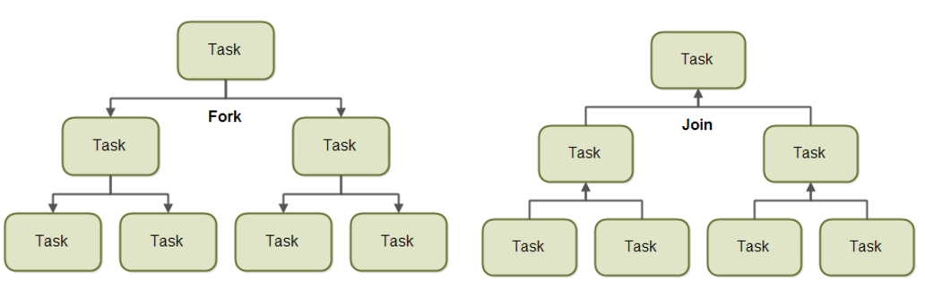 즉, 분할 정복(Divide and Conquer) 알고리즘과 흡사하며, Fork를 통해 Task를 분담하고 Join을 통해 결과를 합친다.