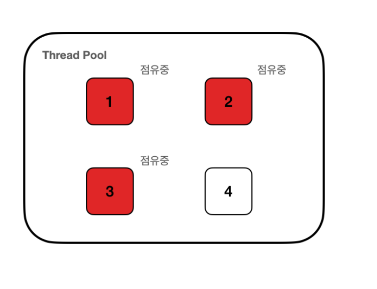 이렇게 되면 Thread 1, 2, 3은 사용할 수 없으며 Thread 4 한 개 만을 이용해서 모든 요청을 처리하게 된다.