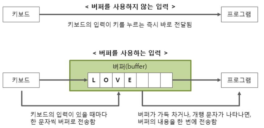 고로 버퍼링없이 키보드가 눌릴 때마다 눌린 정보를 바로 목적지를 이동시켜주는 것보다
