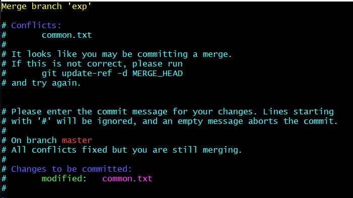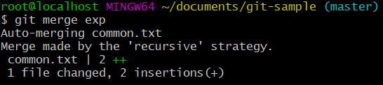 위와 같이 정상적으로 exp 브랜치에 common.txt가 merge된 것을 볼 수 있다.
