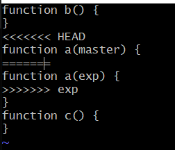 exp 브랜치에서 같은 파일에 function c() {} 를 추가해서 merge를 해보자.