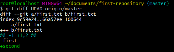 clone 파트에서 만들었던 다른 디렉토리(second-repository)에서 해당 파일(first.txt)을 업데이트 후 git으로 push하였다.