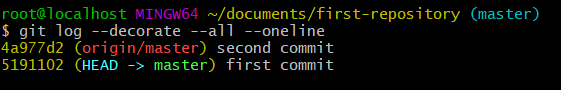 HEAD와 origin/master가 동일한 위치를 가리키고 있는 것을 확인할 수 있다.