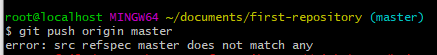 위와 같이 error : src refspec master does not match any 라는 메시지와 함께 에러가 난다.