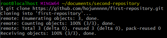 clone은 git clone <원격 저장소 주소>를 이용하여 사용할 수 있다.