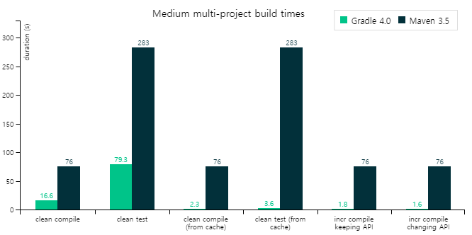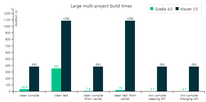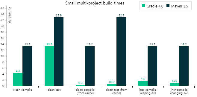 아래 사진은 gradle과 maven의 속도 비교 표 입니다.