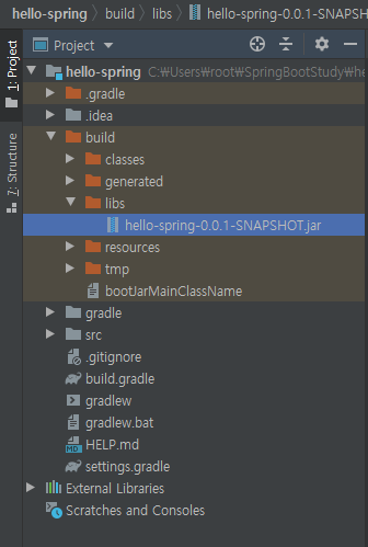 build 폴더가 생성되었고, 아래와 같이 jar 파일이 생성된 것을 확인하실 수 있습니다.