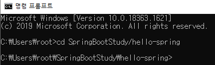 cmd로 해당 프로젝트 폴더의 위치로 이동합니다.