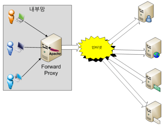 일반적인 프록시 서버를 말하며, 클라이언트와 웹 서버의 중계역할로
