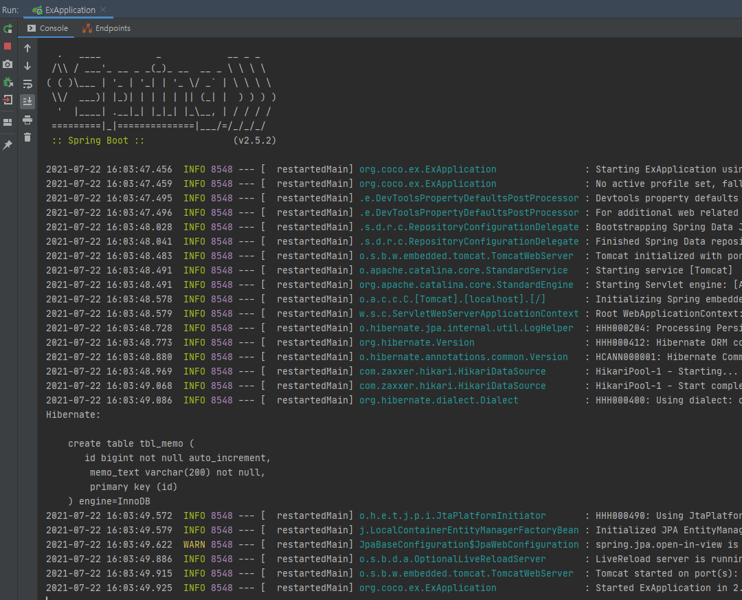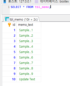 - MemoRepository를 이용해서 작성된 테이블에 SQL문 없이 CRUD 작업을 할 수 있게 됩니다.